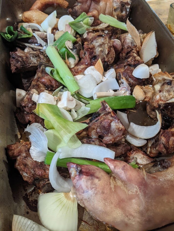 4. Once bones and vegetables appear nicely browned all over, remove from the oven (approximately 1 hour total).