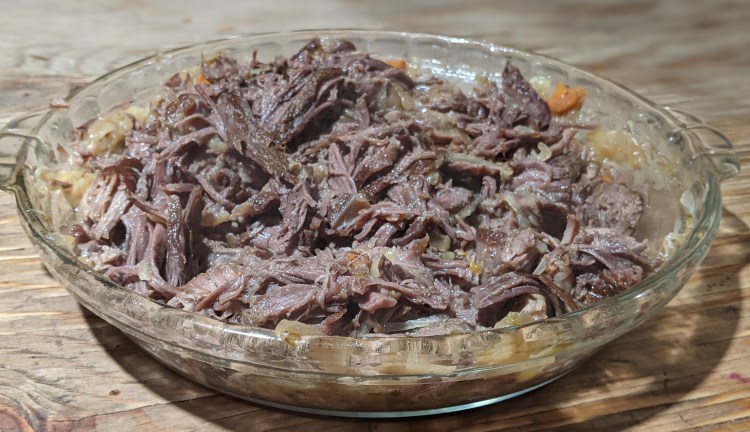 - Add shredded meat back into sauce.