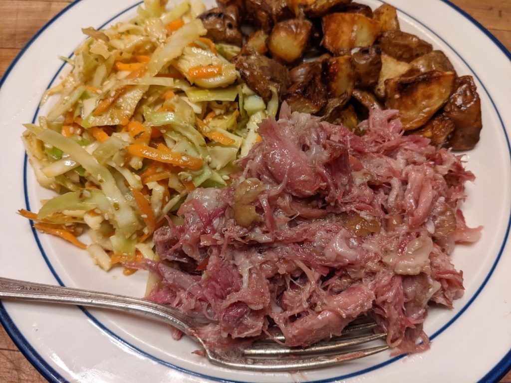 When I think of pork hock recipes, my mind instantly thinks of baked beans, or my mother’s delicious split pea soup. While both of these are excellent uses of smoked hocks (try those too!), this delicious cut also deserves to star in its own show occasionally, and take its place on your plate as the main dish alongside some crispy, lard-fried potatoes and homemade slaw. I will also say the shredded pork resulting from this dish is perfect for sandwiches, as a taco or enchilada filling, nacho topping, or scrambled with eggs and potatoes for a rib-sticking breakfast. The possibilities are endless. I encourage you to make a big pot, serve it that night as the main dish, and then see how many ways you can use the left-overs for the next several days!