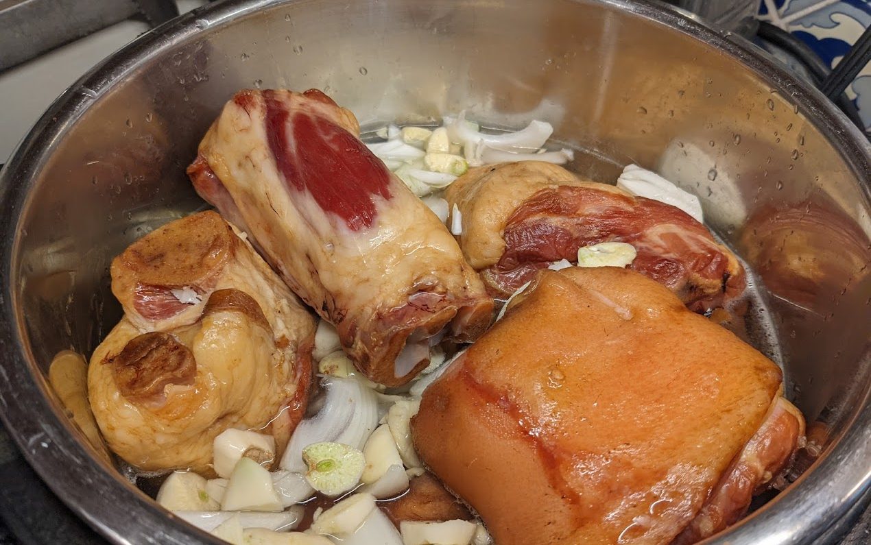 - 2-4 litres water, or as much as needed to cover the hocks with water