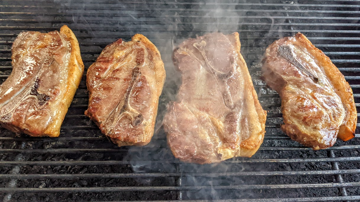 - Using your BBQ tongs, quickly turn each steak perpendicular to the grill to sear the edge of the fat cap, remove from the grill, and rest uncovered until serving.