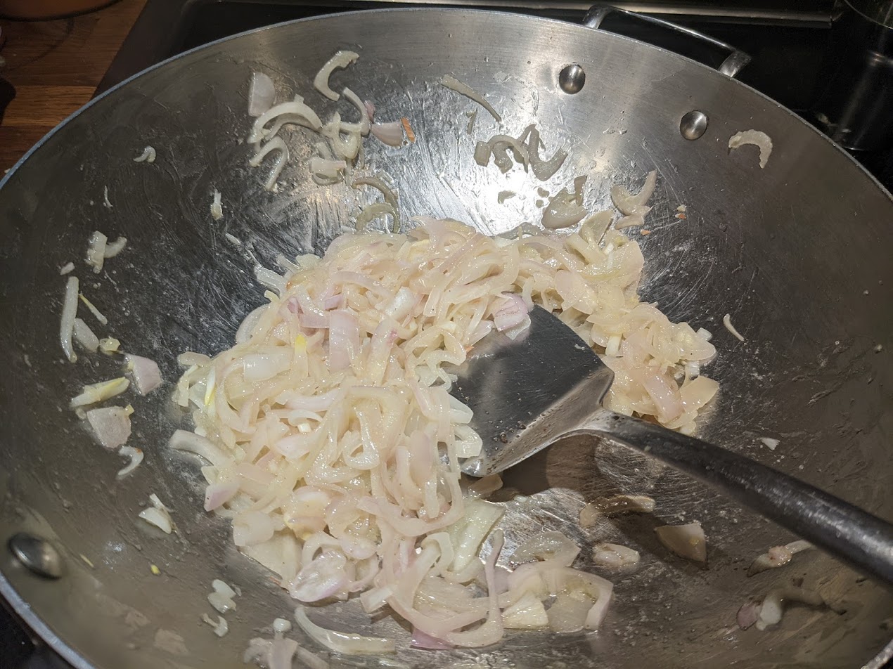 2 larger shallots or 1 large yellow onion, sliced thinly