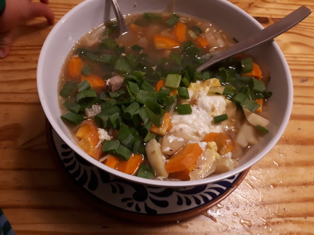 This winter I’ve been making broth almost every week. I’ve found that always having a fresh pot of stock in the fridge means that putting together a decent meal for the family is never too daunting a task. We’ve been having variations on ramen or pho several times a week in this house, and no one has complained yet. Here’s what I do.