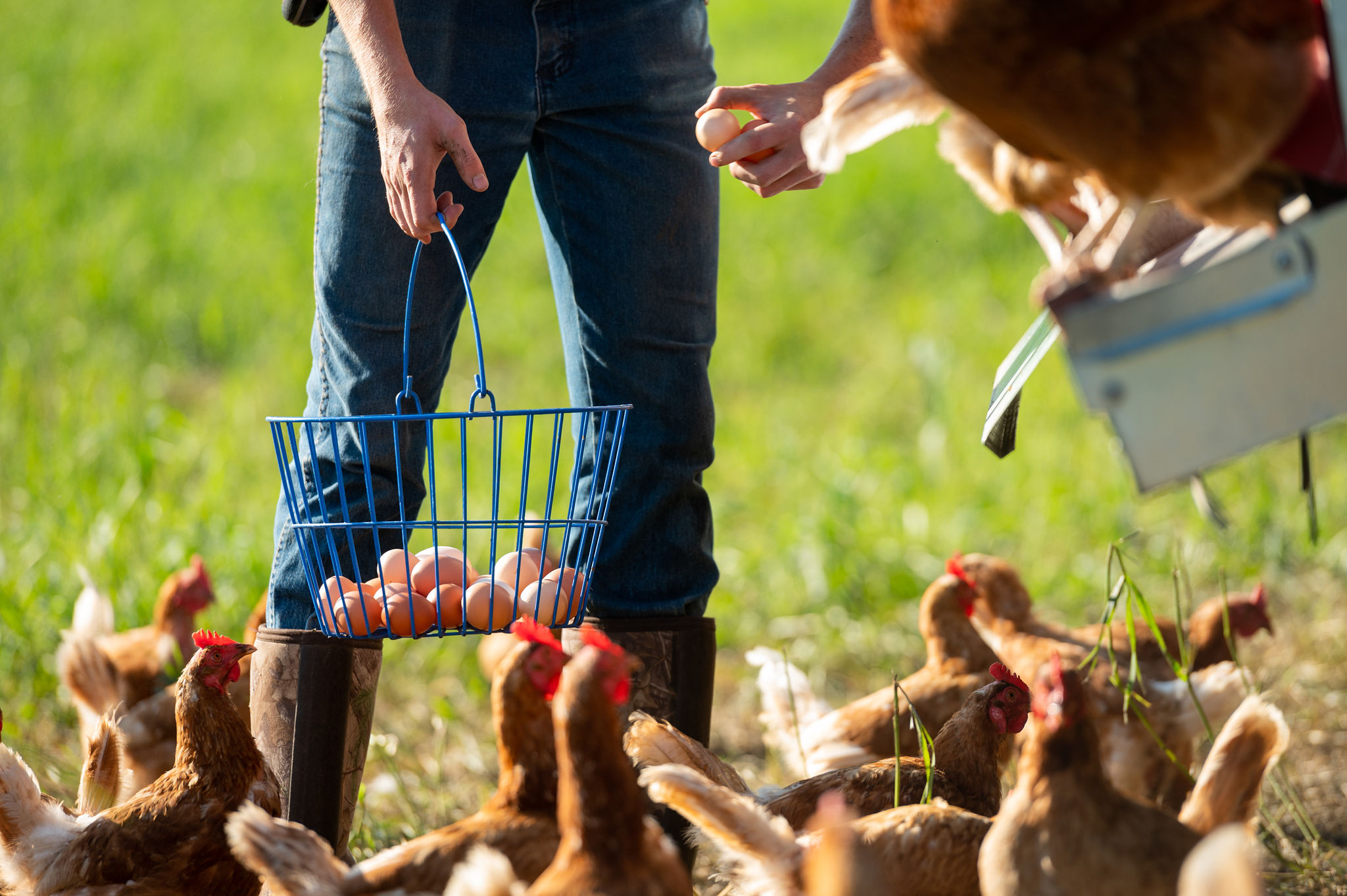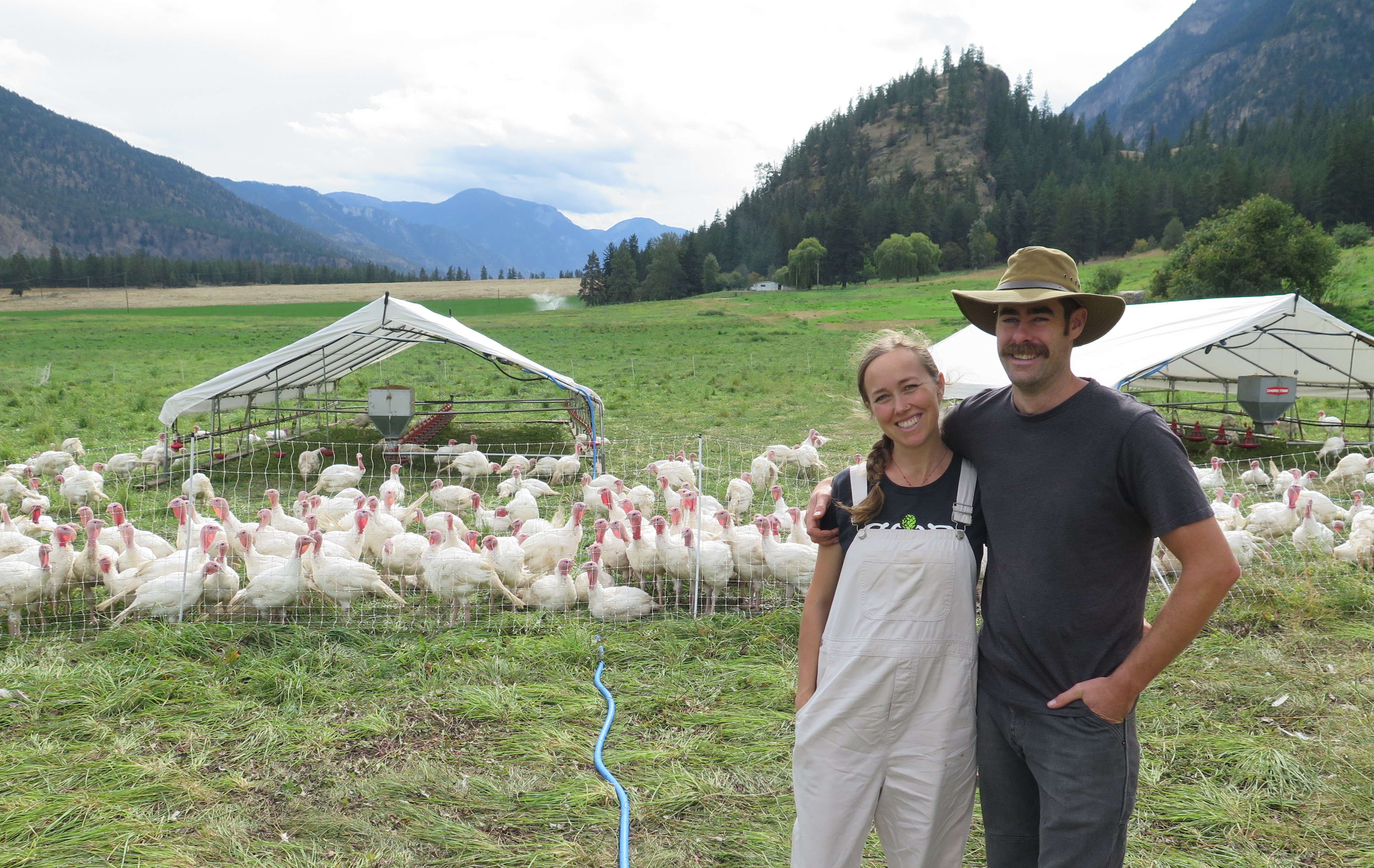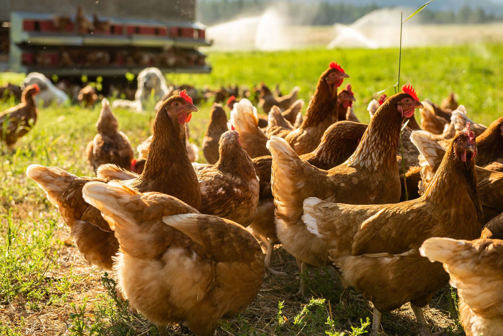 Our poultry housing and paddocks are moved across the pasture throughout the season so that the birds always have access to fresh forage and grubs, and their impact is evenly and beneficially spread across the farm. We supplement the birds’ foraging with certified organic, soy-and-corn-free feed we purchase from a trusted BC organic feed mill. All our poultry is slaughtered and packaged right here on the farm — hatch day to harvest day, we control every detail.