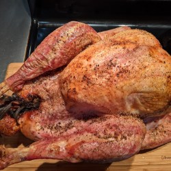 This recipe is adapted from Alton Brown’s Classic Brined and Roasted Turkey